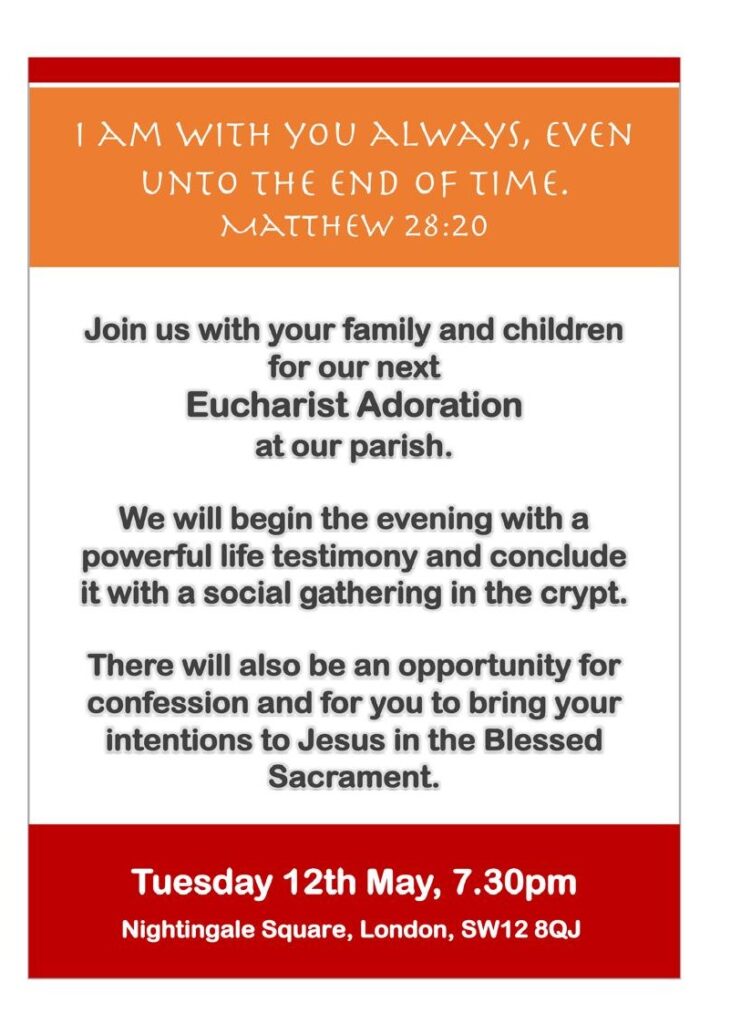 • Where: Holy Ghost Catholic Church, Nightingale Square, Balham, London, SW12 8QJ